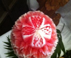 Es ist faszinierend zu sehen mit was für einer Leichtigkeit man aus einfachen Lebensmitteln wie Karotten, Kürbis, Rettich oder Rote Beete kleine Kunstwerke herstellen kann. Als ich es das erste mal gesehen habe dachte ich ebenfalls das man das mit Sicherheit nicht lernen kann, es ist einfach wieder unserer Natur. Mittlerweile habe ich es gelernt und kann die meisten Dinge muss aber auch heute noch sagen das es einges gibt das einfach für uns Europäer unmöglich zu lernen ist. Der Unterschied ist einfach, das Handwerk kann man lernen, die Kunst nicht.
